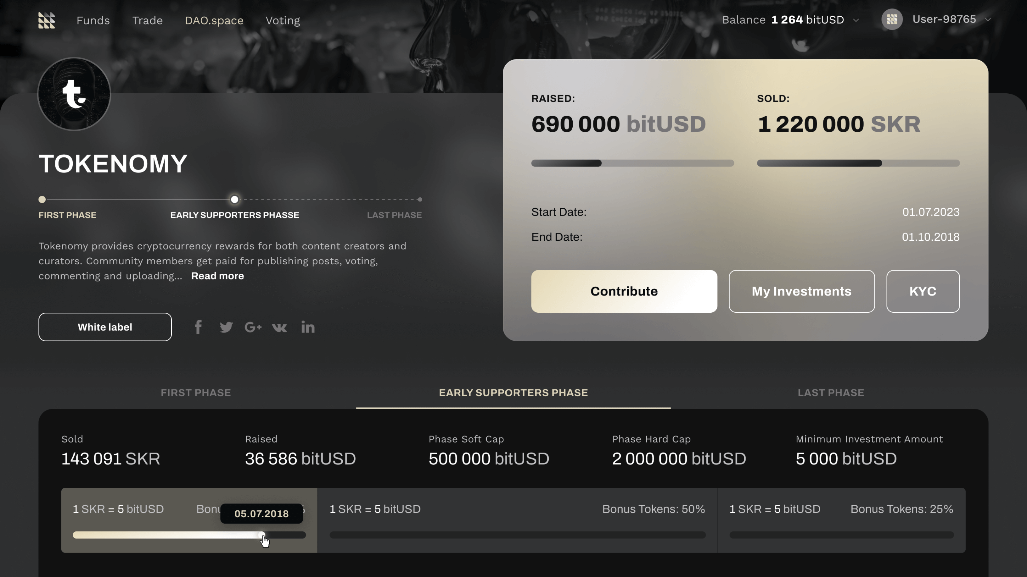 Der DAO Space bietet eine „Konstellation“ von DAO Projekten, in die Sie investieren können. Als Projekteigentümer entscheiden nur Sie, welche Informationen die Investoren auf Ihrer Seite einsehen können, bis hin zu individuellen Datenzugriffsberechtigungen pro Userrolle, sofern erforderlich.