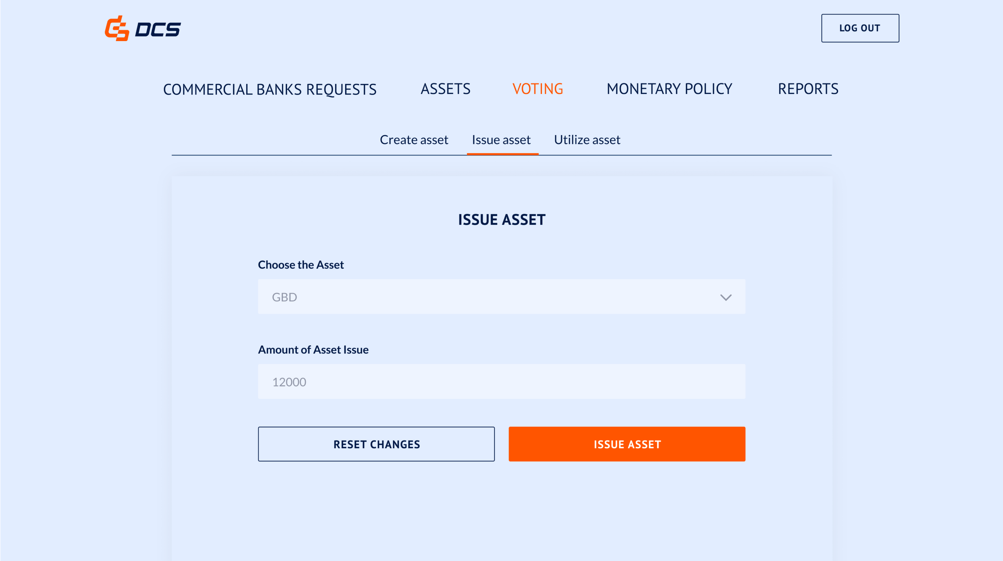 Sobald der neue Vermögenswert genehmigt ist, kann er für den Umlauf ausgegeben werden. Wählen Sie den Vermögenswert aus der Liste aller verfügbaren Vermögenswerte aus und geben Sie den auszugebenden Betrag an. Nachdem der Vermögenswert ausgegeben wurde, können Sie diesen über den entsprechenden Menüpunkt nutzen.