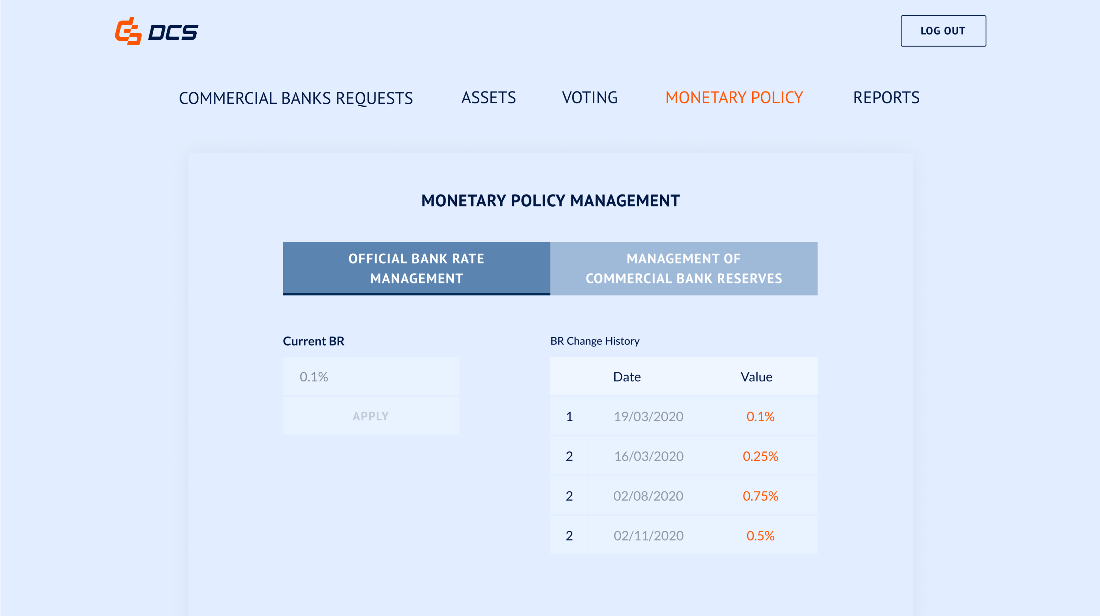 Übernehmen Sie die Kontrolle über die Geldpolitik Ihrer Bank, indem Sie die Bankzinsen beeinflussen und deren Veränderungen im Laufe der Zeit überwachen. Auch hier durchläuft jeder Vorschlag zur Änderung der Bankzinsen eine Abstimmung.