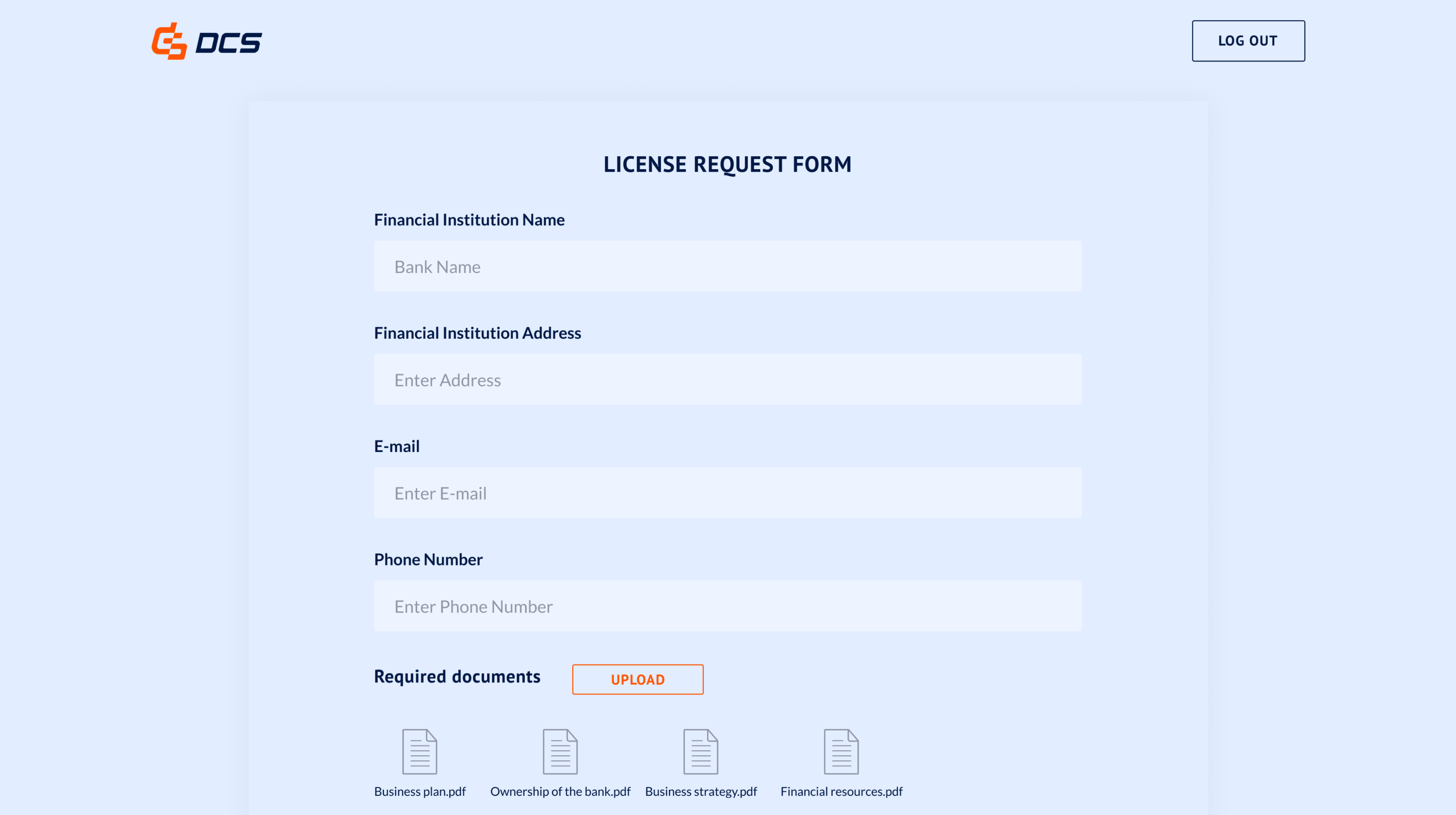Um einen Lizenzantrag zu stellen, müssen Sie die Kontaktdaten Ihrer Bank angeben und alle erforderlichen Unterlagen beifügen. Die Finanzaufsichtsbehörden können Lizenzanträge entweder bewilligen oder ablehnen.
