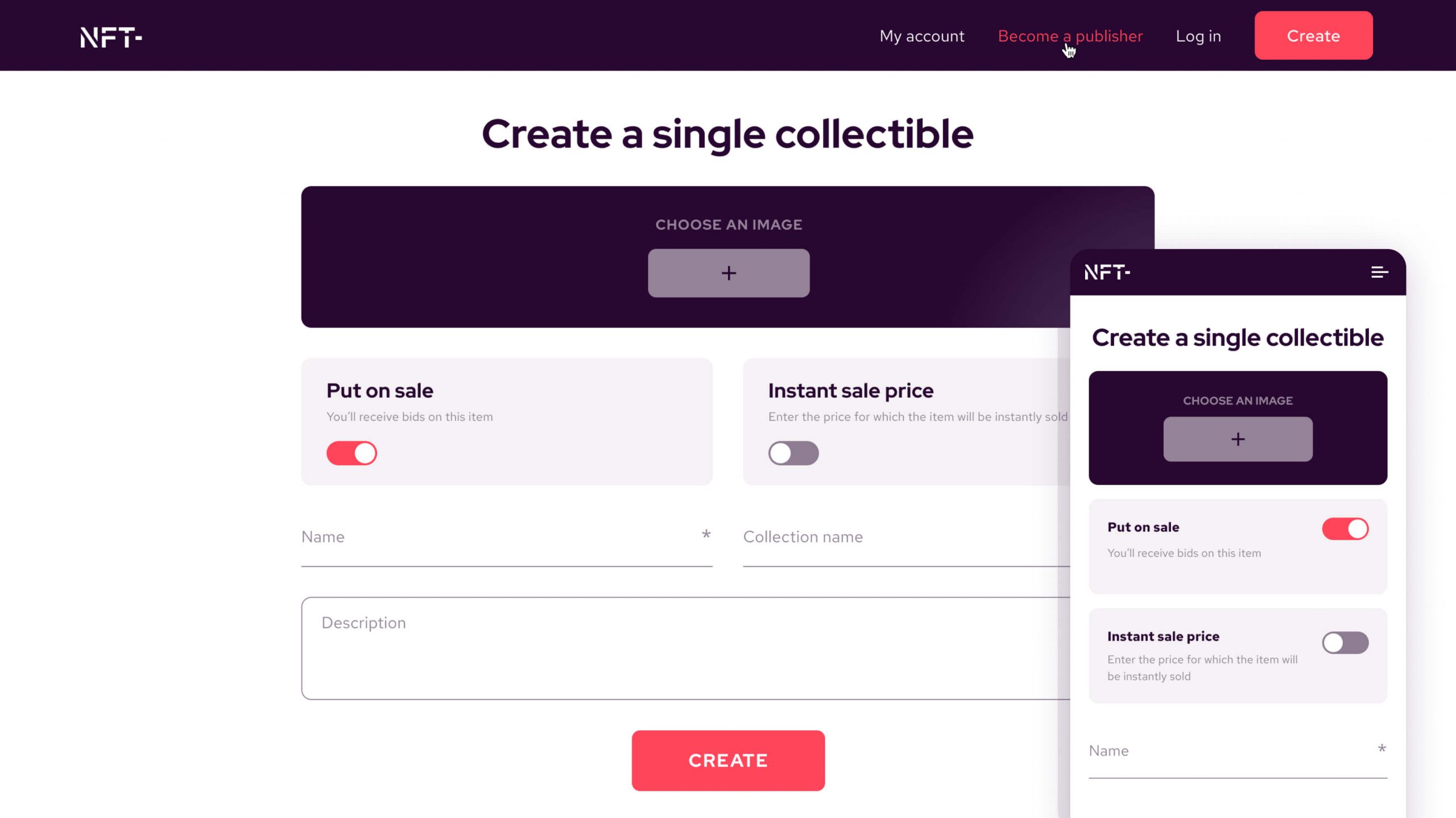 Um Ihr eigenes Kunstwerk in einen nicht fungiblen Token umzuwandeln, laden Sie es einfach in das Netzwerk hoch, und das System erledigt den Rest! Sie können bis zu 5 Artikel auf einmal hochladen und diese sofort zum Verkauf anbieten.