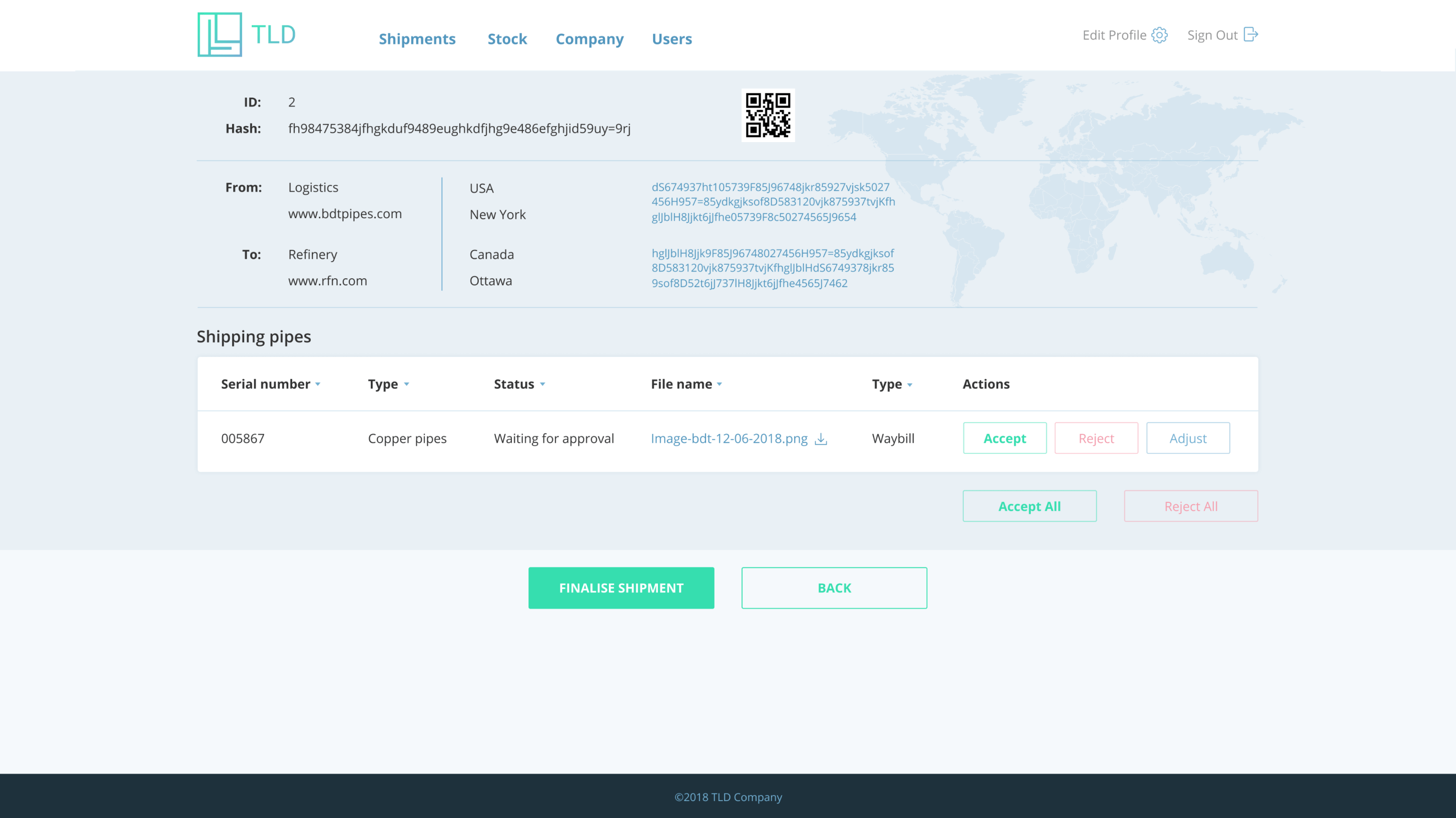 Bevor Sie den Versand abschließen, stellen Sie sicher, dass die Transaktionsdaten korrekt sind und dass Sie die zugehörigen Rohre annehmen oder ablehnen können. Sie können die Daten jedoch jederzeit VOR dem Abschluss des Versands anpassen.