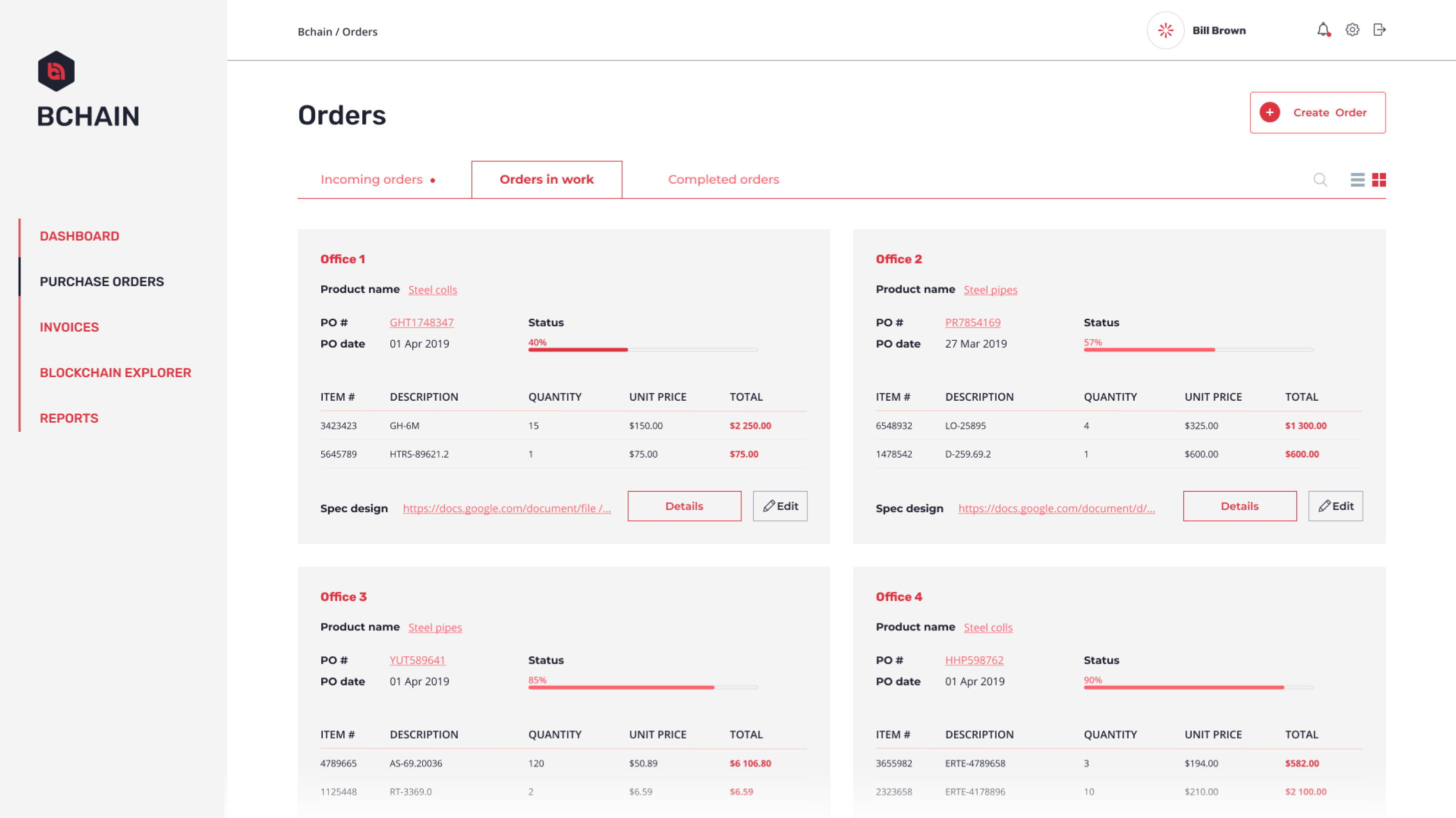 Für Ihre Bequemlichkeit bietet die Lösung einen eigenen Tab für Bestellungen, die derzeit in Arbeit sind, mit einem 360-Grad-Blick auf jede einzelne: Status, Spezifikationen, Details.