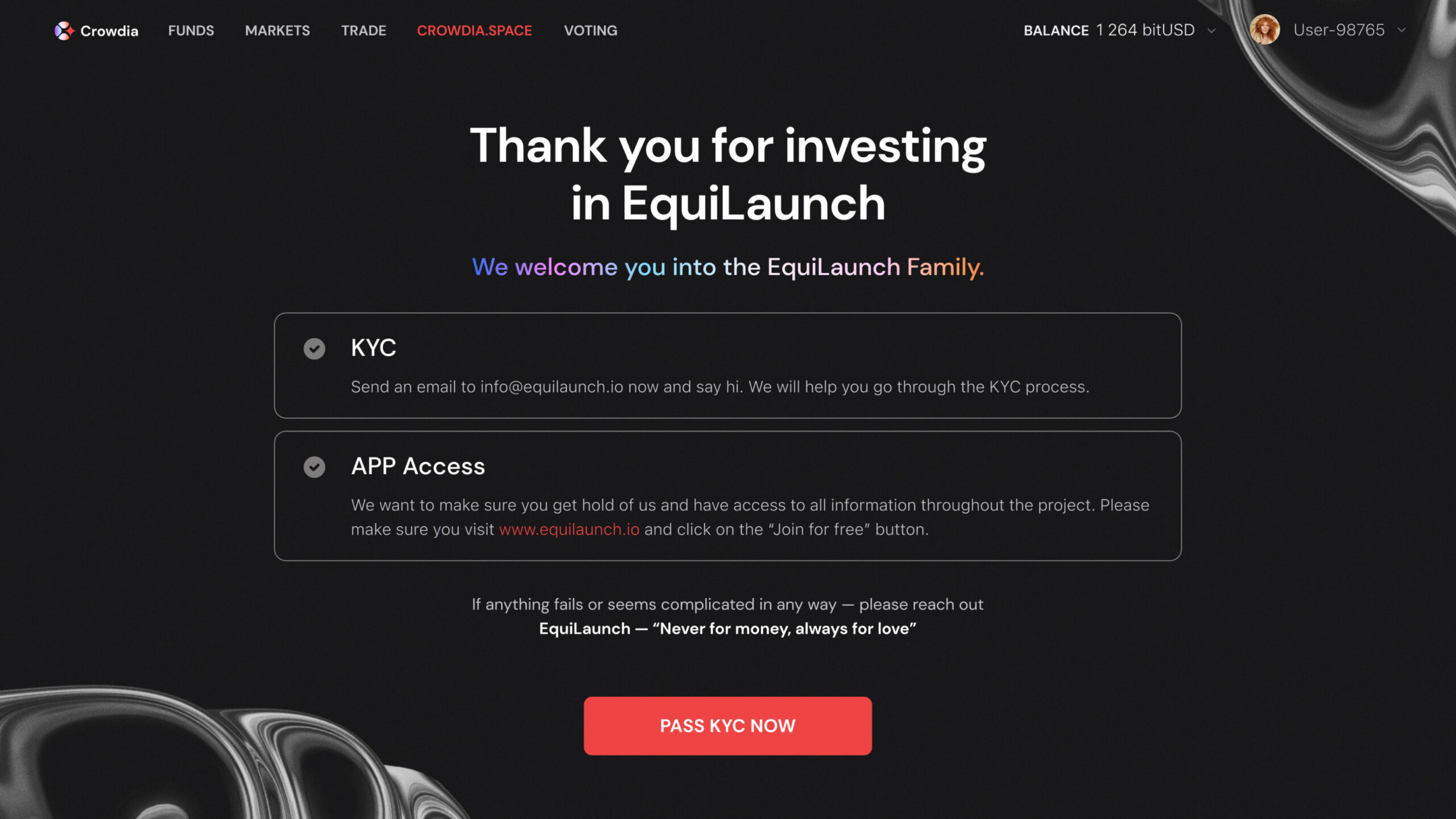 NFT staking Wir begrüßen alle Investoren, egal ob Frühphasen-, ICO- oder Rundeninvestoren, auf der White-Label-Crowdfunding-Plattform! Beachten Sie, dass Sie für jedes Projekt, in das Sie investieren möchten, die KYC-Prüfung bestehen müssen, um ein autorisierter Investor für das Projekt zu werden.