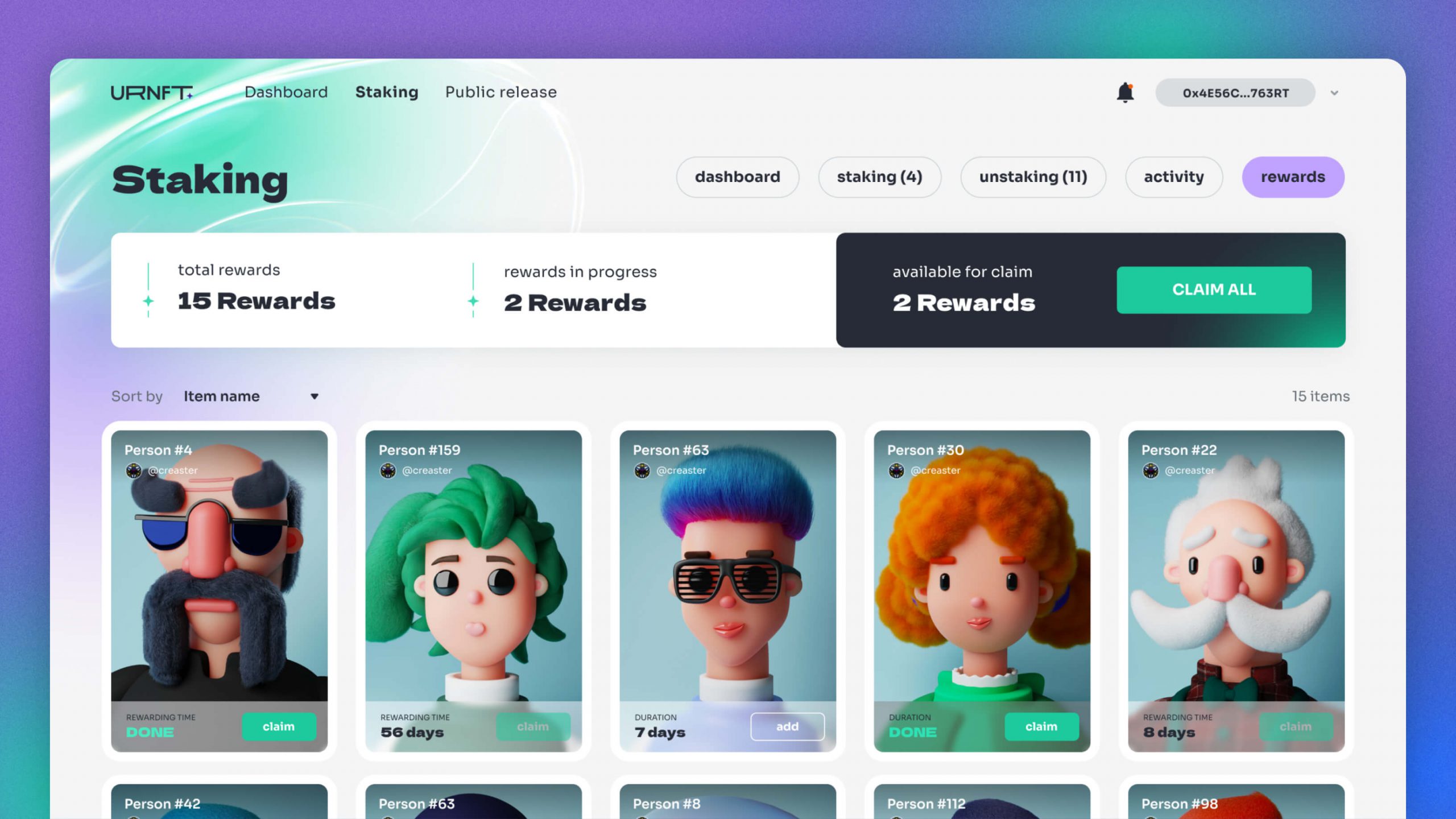 Maximieren Sie den Wert für NFT-Inhaber, indem Sie ihnen ermöglichen, ein passives Einkommen aus ihren NFTs zu erhalten, während sie diese weiterhin besitzen! Führen Sie Ihre eigene DeFi-Staking-Plattform ein, auf der Nutzer ihre Token in einer bestimmten Form einsetzen und dafür Belohnungen erhalten können. Nur Sie bestimmen die genauen Regeln. Die einzige Sache, die sich nie ändert, ist, dass nichts die Einkommensströme stoppen wird!